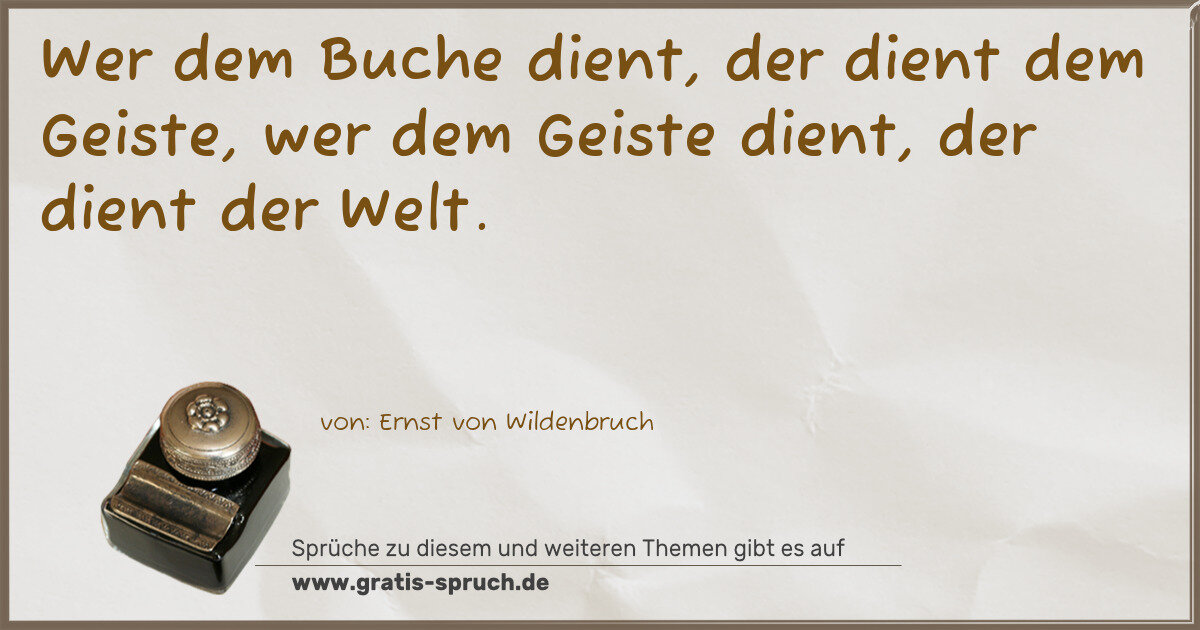 Wer dem Buche dient, der dient dem Geiste, wer dem Geiste dient, der dient der Welt.