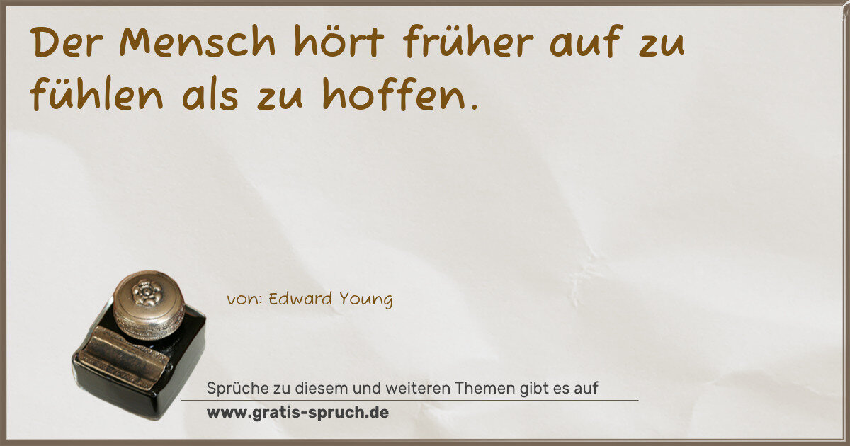 Der Mensch hört früher auf zu fühlen als zu hoffen.