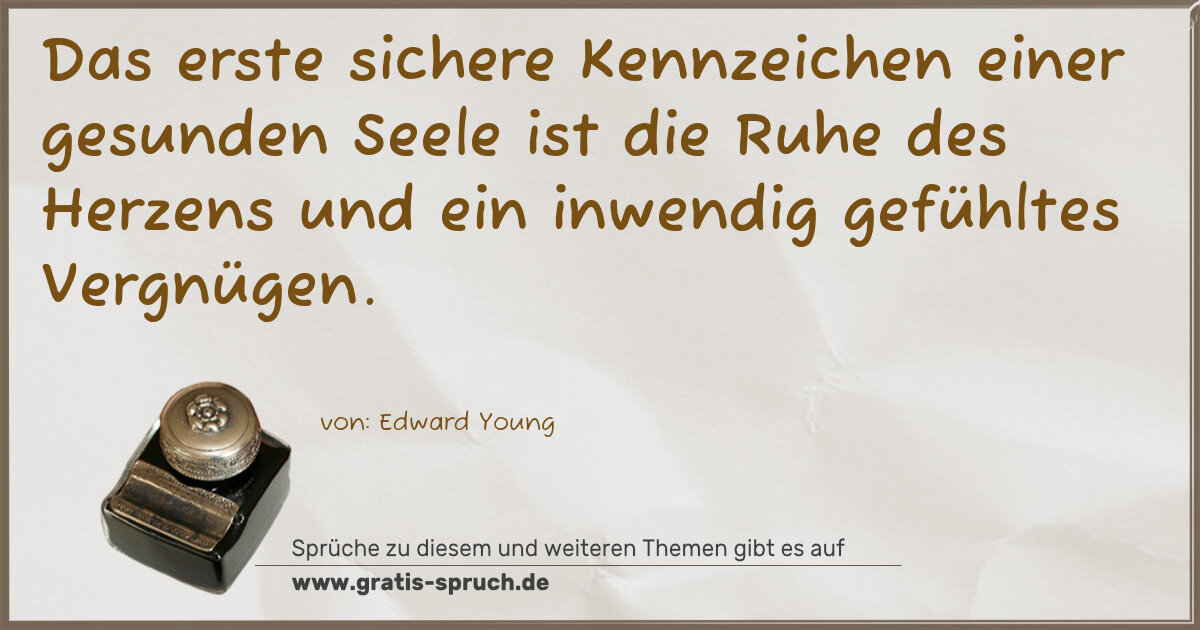 Das erste sichere Kennzeichen einer gesunden Seele ist die Ruhe des Herzens und ein inwendig gefühltes Vergnügen.