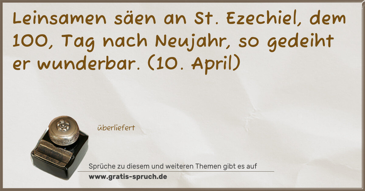 Leinsamen säen an St. Ezechiel, dem 100, Tag nach Neujahr, so gedeiht er wunderbar. (10. April)