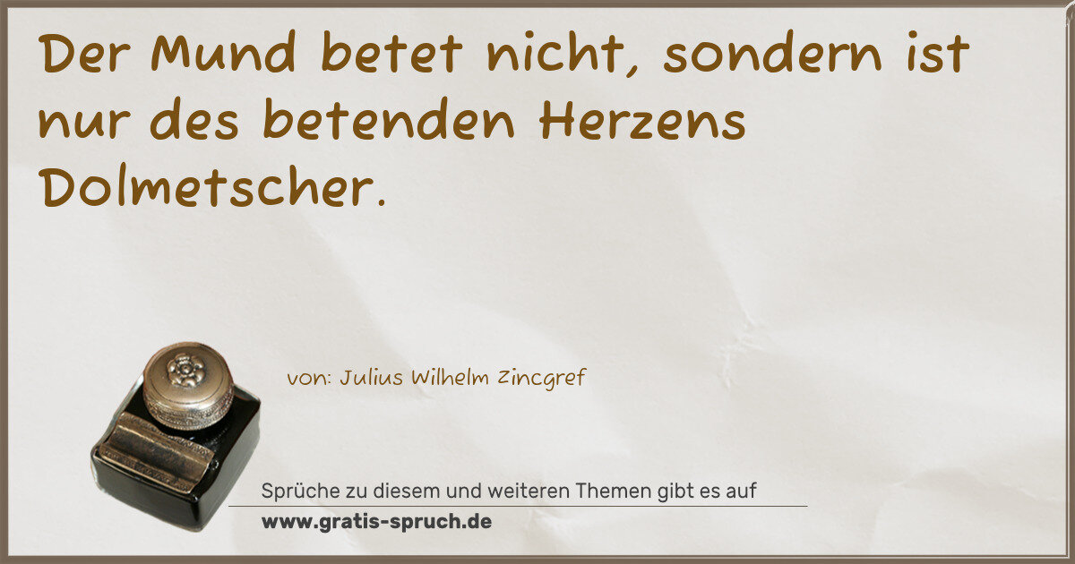 Der Mund betet nicht, sondern ist nur des betenden Herzens Dolmetscher.