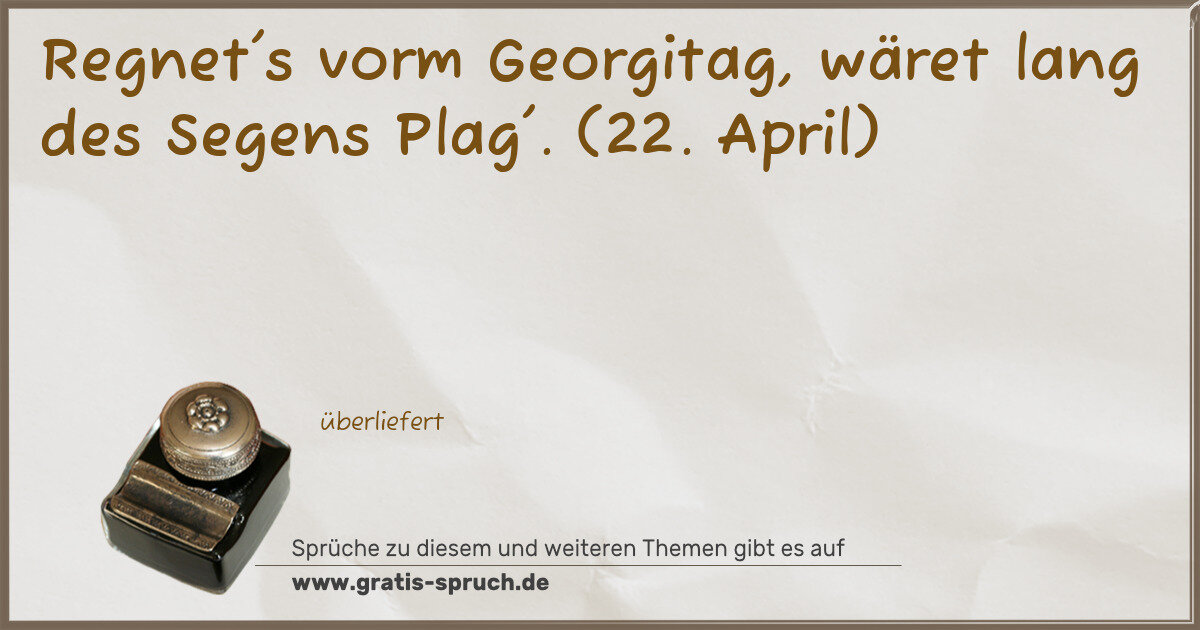 Regnet's vorm Georgitag, wäret lang des Segens Plag'. (22. April)