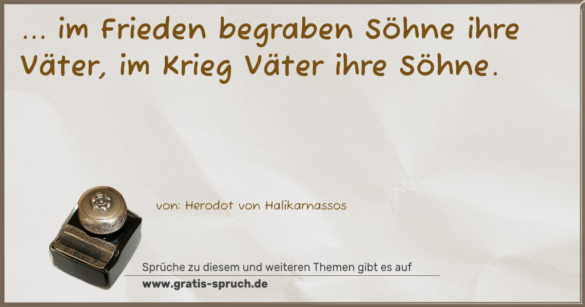 Kein Mann ist so dumm, den Krieg herbeizuwünschen und nicht den Frieden; denn im Frieden tragen die Söhne ihre Väter …