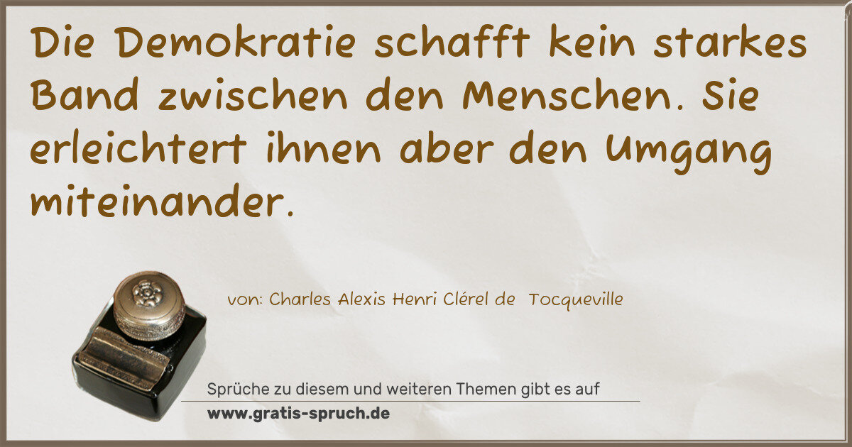 Die Demokratie schafft kein starkes Band zwischen den Menschen. Sie erleichtert ihnen aber den Umgang miteinander.
