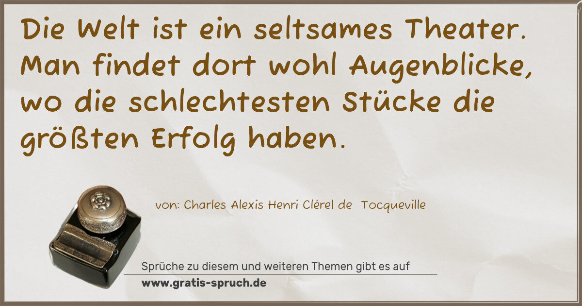 Die Welt ist ein seltsames Theater. Man findet dort wohl Augenblicke, wo die schlechtesten Stücke die größten Erfolg haben.