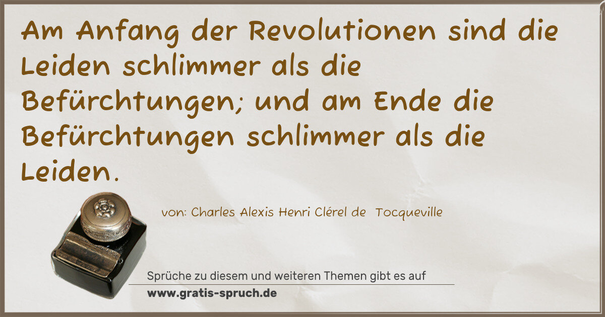 Am Anfang der Revolutionen sind die Leiden schlimmer als die Befürchtungen; und am Ende die Befürchtungen schlimmer als die Leiden.