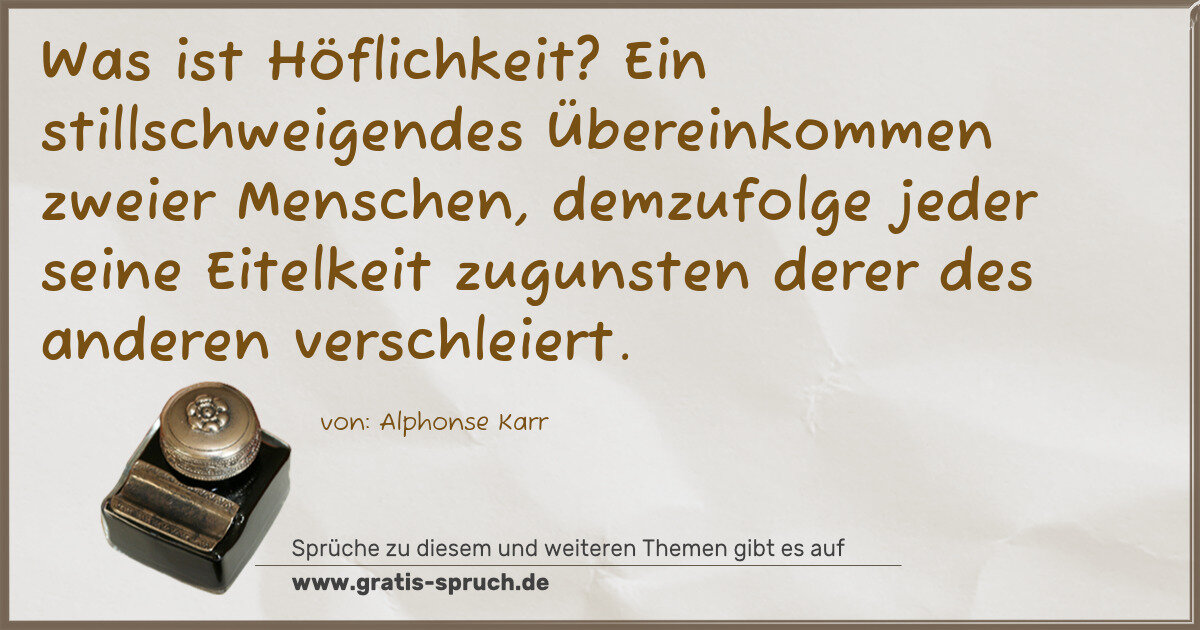 Was ist Höflichkeit? Ein stillschweigendes Übereinkommen zweier Menschen, demzufolge jeder seine Eitelkeit zugunsten derer des anderen verschleiert.
