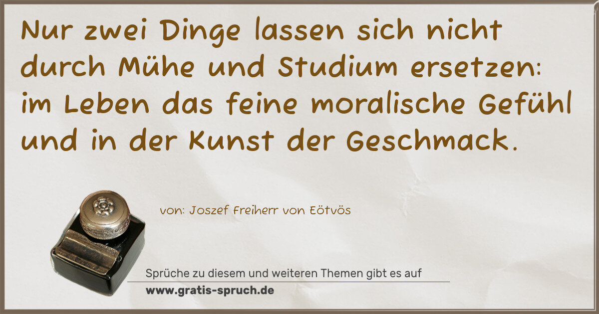 Nur zwei Dinge lassen sich nicht durch Mühe und Studium ersetzen: im Leben das feine moralische Gefühl und in der Kunst der Geschmack.