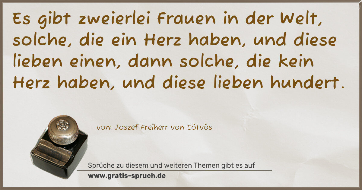 Es gibt zweierlei Frauen in der Welt, solche, die ein Herz haben, und diese lieben einen, dann solche, die kein Herz haben, und diese lieben hundert.