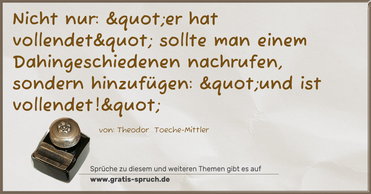 Nicht nur: "er hat vollendet" sollte man einem Dahingeschiedenen nachrufen, sondern hinzufügen: "und ist vollendet!"
