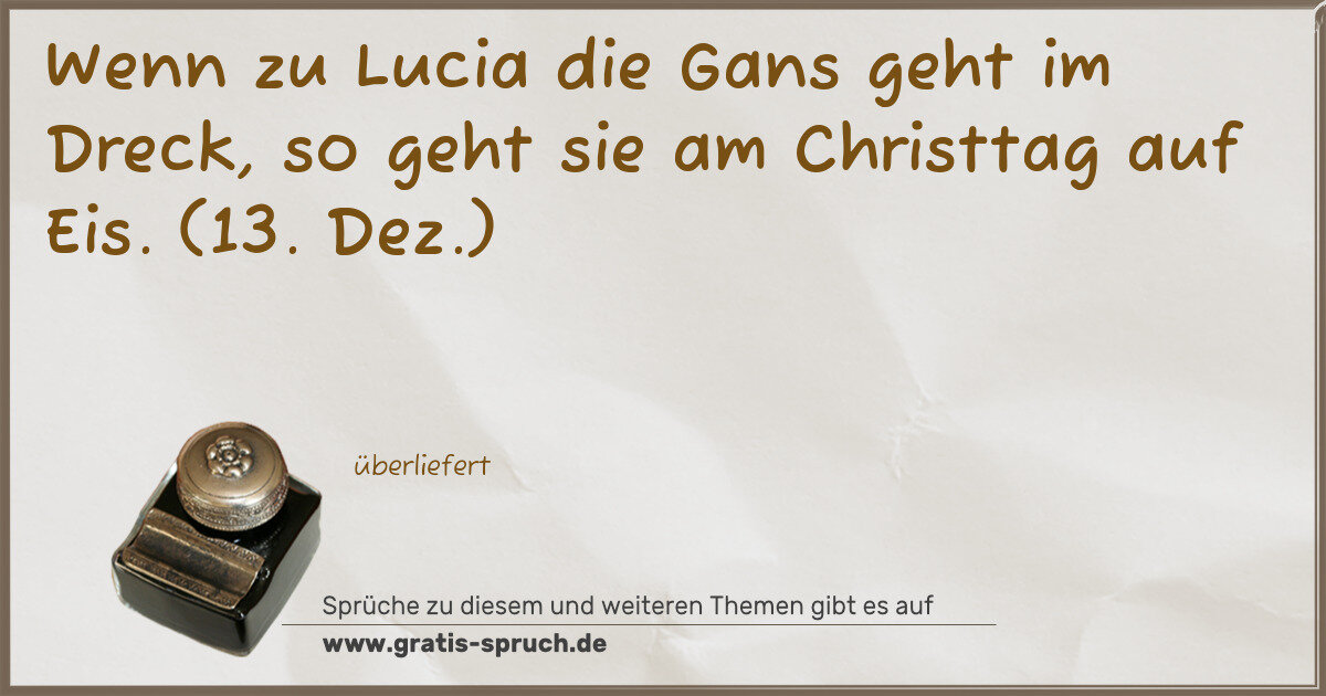 Wenn zu Lucia die Gans geht im Dreck, so geht sie am Christtag auf Eis. (13. Dez.)