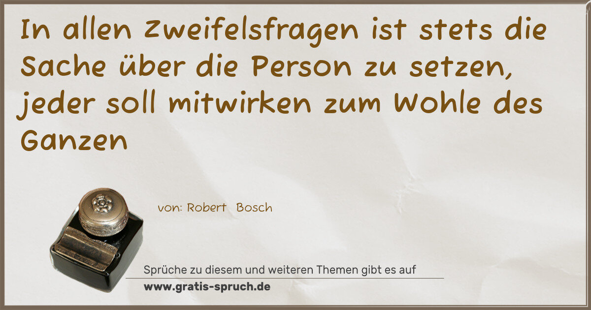 In allen Zweifelsfragen ist stets die Sache über die Person zu setzen, jeder soll mitwirken zum Wohle des Ganzen