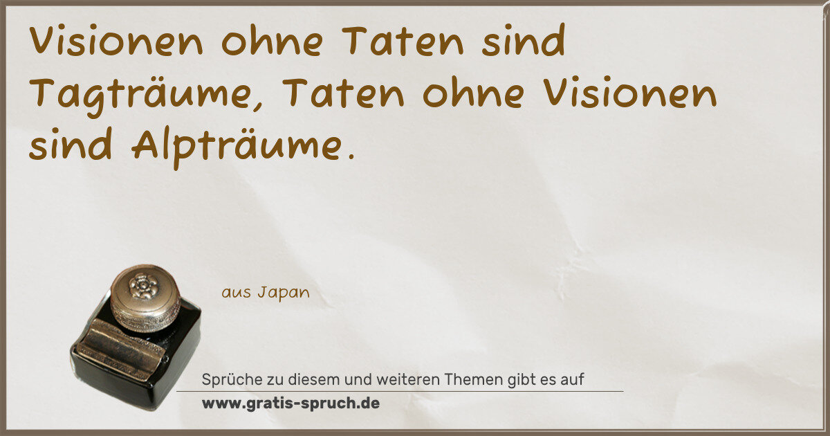 Visionen ohne Taten sind Tagträume, Taten ohne Visionen sind Alpträume.