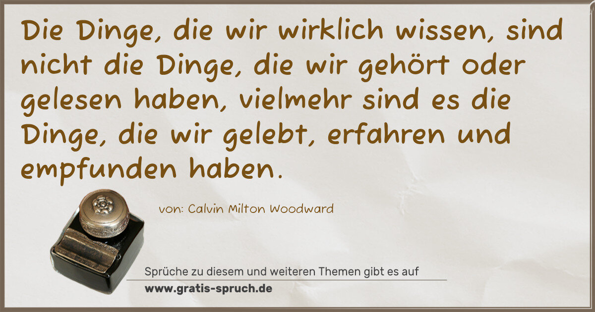 Die Dinge, die wir wirklich wissen, sind nicht die Dinge, die wir gehört oder gelesen haben, vielmehr sind es die Dinge, die wir gelebt, erfahren und empfunden haben.