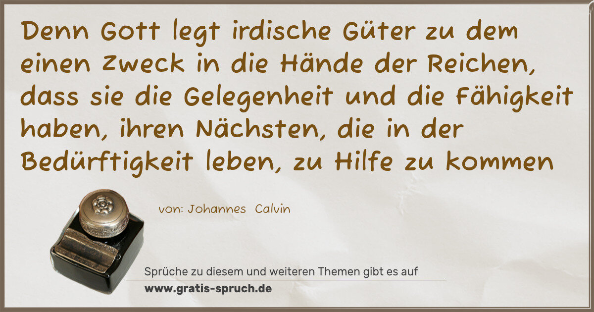 Denn Gott legt irdische Güter zu dem einen Zweck in die Hände der Reichen, dass sie die Gelegenheit und die Fähigkeit haben, ihren Nächsten, die in der Bedürftigkeit leben, zu Hilfe zu kommen