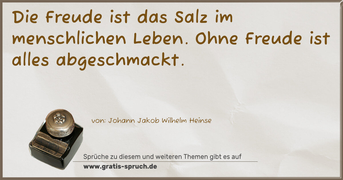 Die Freude ist das Salz im menschlichen Leben. Ohne Freude ist alles abgeschmackt.