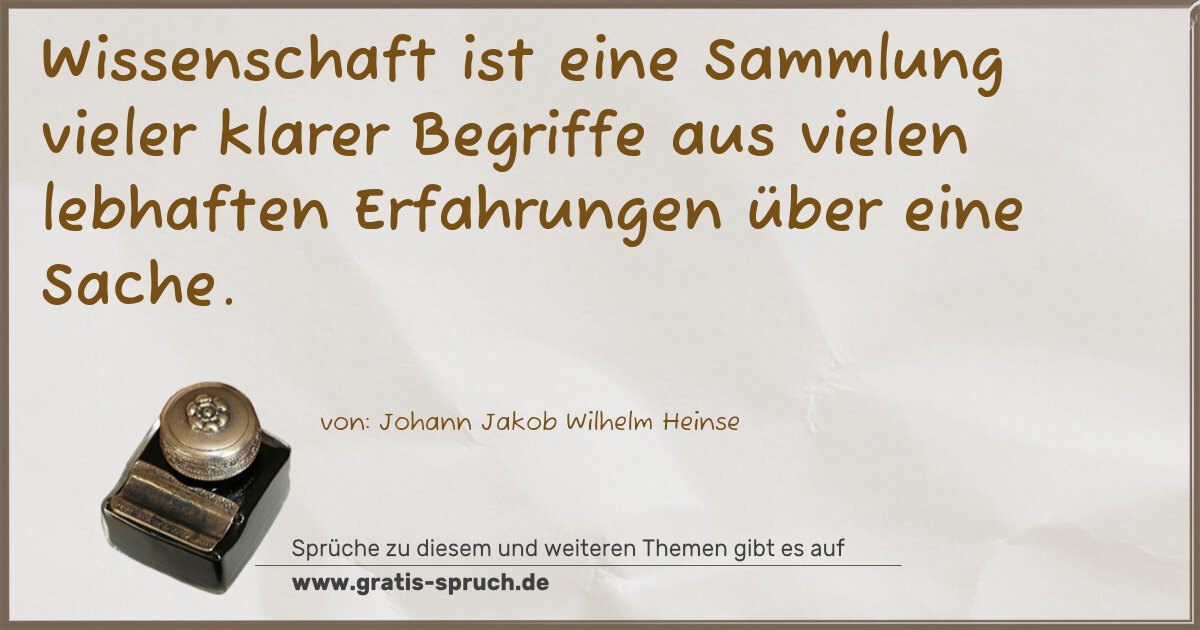 Wissenschaft ist eine Sammlung vieler klarer Begriffe aus vielen lebhaften Erfahrungen über eine Sache.