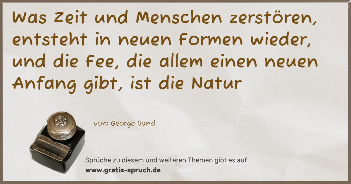 Was Zeit und Menschen zerstören, entsteht in neuen Formen wieder, und die Fee, die allem einen neuen Anfang gibt, ist die Natur