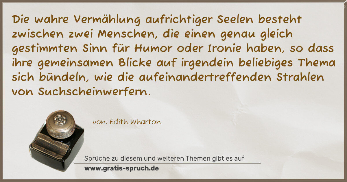 Die wahre Vermählung aufrichtiger Seelen besteht zwischen zwei Menschen, die einen genau gleich gestimmten Sinn für Humor oder Ironie haben, so dass ihre gemeinsamen Blicke auf irgendein beliebiges Thema sich bündeln, wie die aufeinandertreffenden Strahlen von Suchscheinwerfern.