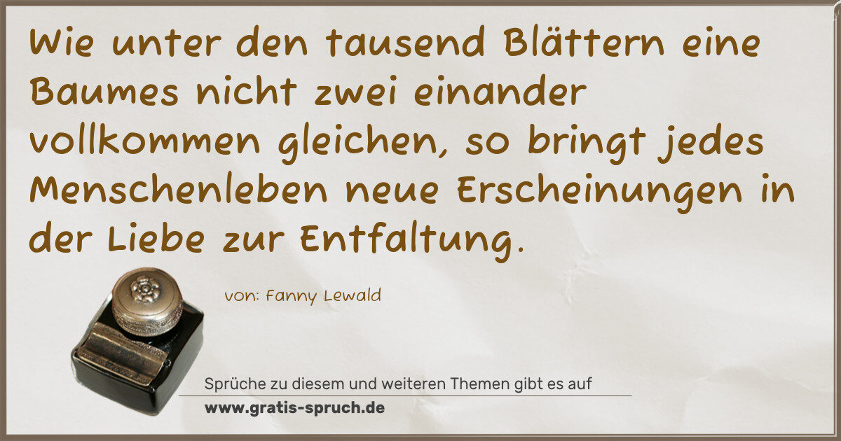 Wie unter den tausend Blättern eine Baumes nicht zwei einander vollkommen gleichen, so bringt jedes Menschenleben neue Erscheinungen in der Liebe zur Entfaltung.