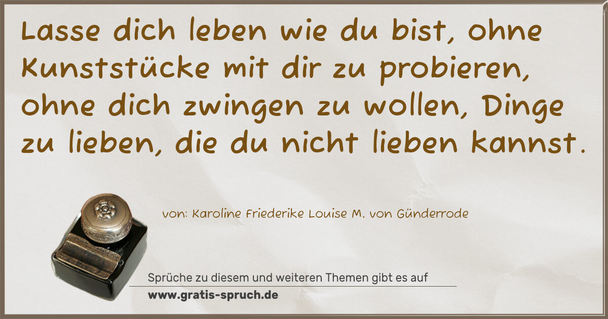 Lasse dich leben wie du bist, ohne Kunststücke mit dir zu probieren, ohne dich zwingen zu wollen, Dinge zu lieben, die du nicht lieben kannst.