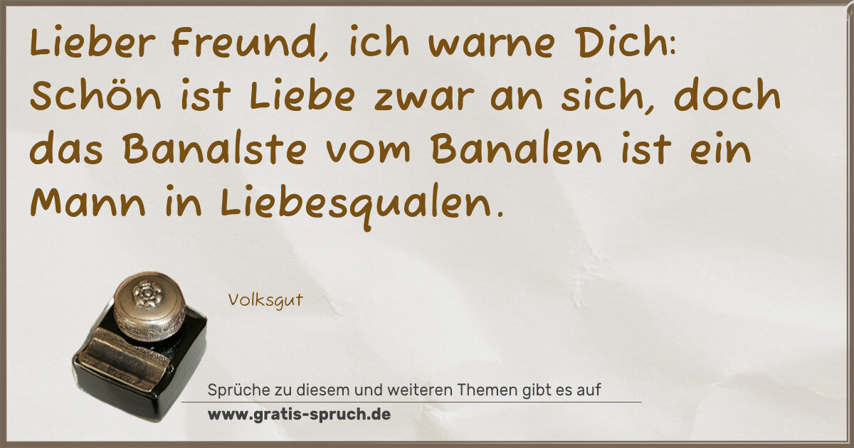 Lieber Freund, ich warne Dich: Schön ist Liebe zwar an sich, doch das Banalste vom Banalen ist ein Mann in Liebesqualen.