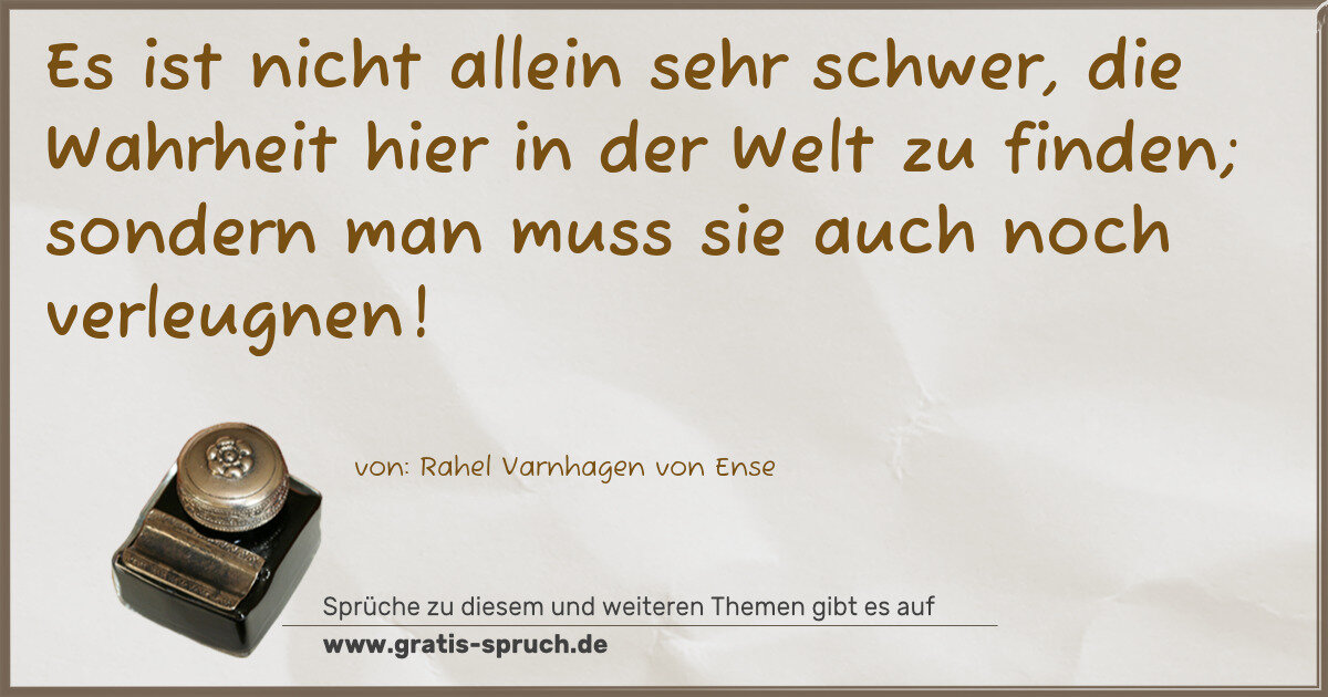 Es ist nicht allein sehr schwer, die Wahrheit hier in der Welt zu finden; sondern man muss sie auch noch verleugnen!