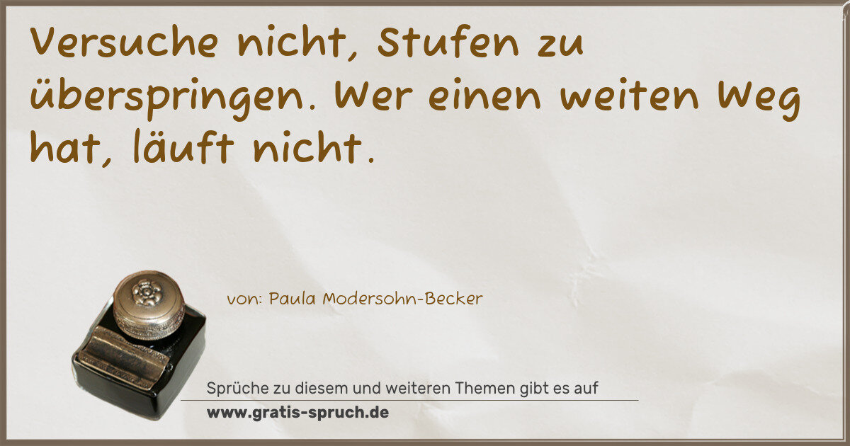 Versuche nicht, Stufen zu überspringen. Wer einen weiten Weg hat, läuft nicht.