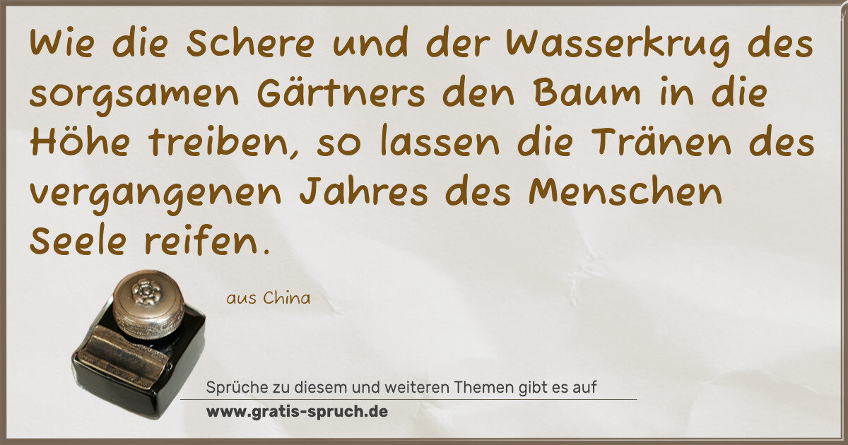 Wie die Schere und der Wasserkrug des sorgsamen Gärtners den Baum in die Höhe treiben, so lassen die Tränen des vergangenen Jahres des Menschen Seele reifen.