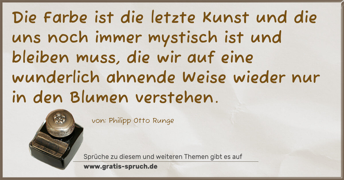 Die Farbe ist die letzte Kunst und die uns noch immer mystisch ist und bleiben muss, die wir auf eine wunderlich ahnende Weise wieder nur in den Blumen verstehen.