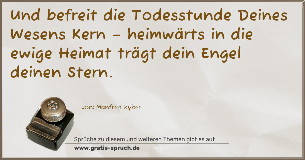 Und befreit die Todesstunde Deines Wesens Kern – heimwärts in die ewige Heimat trägt dein Engel deinen Stern.