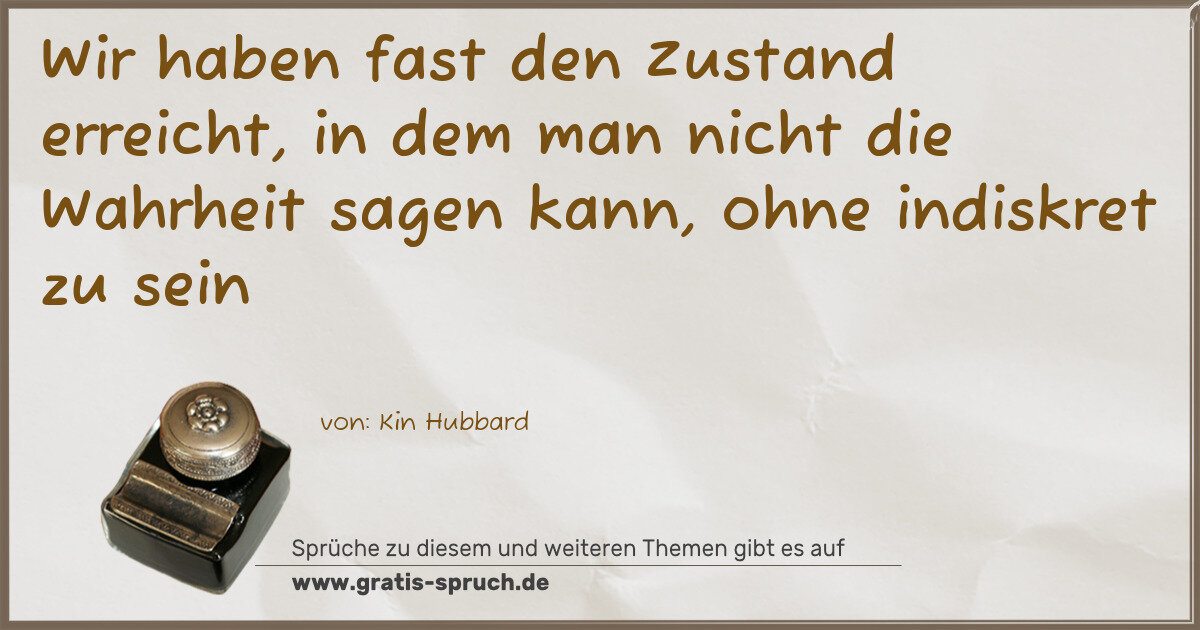 Wir haben fast den Zustand erreicht, in dem man nicht die Wahrheit sagen kann, ohne indiskret zu sein