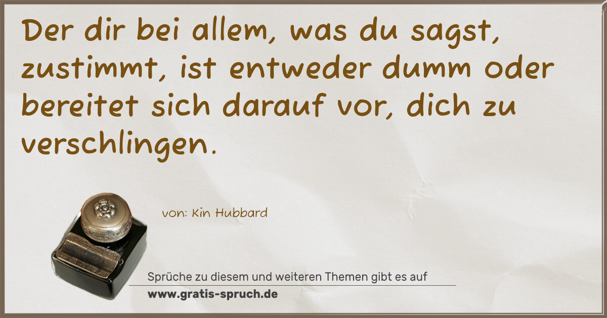 Der dir bei allem, was du sagst, zustimmt, ist entweder dumm oder bereitet sich darauf vor, dich zu verschlingen.
