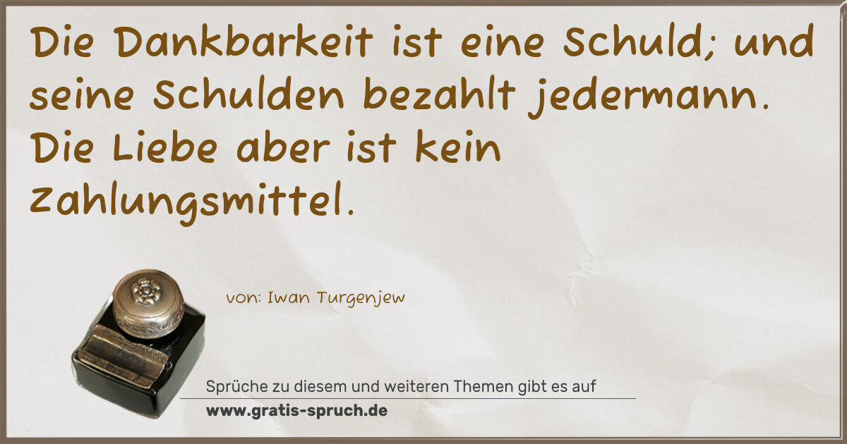 Die Dankbarkeit ist eine Schuld; und seine Schulden bezahlt jedermann. Die Liebe aber ist kein Zahlungsmittel.