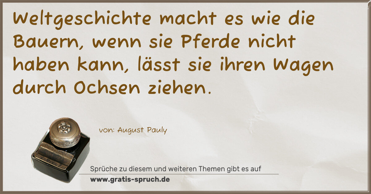 Weltgeschichte macht es wie die Bauern, wenn sie Pferde nicht haben kann, lässt sie ihren Wagen durch Ochsen ziehen.