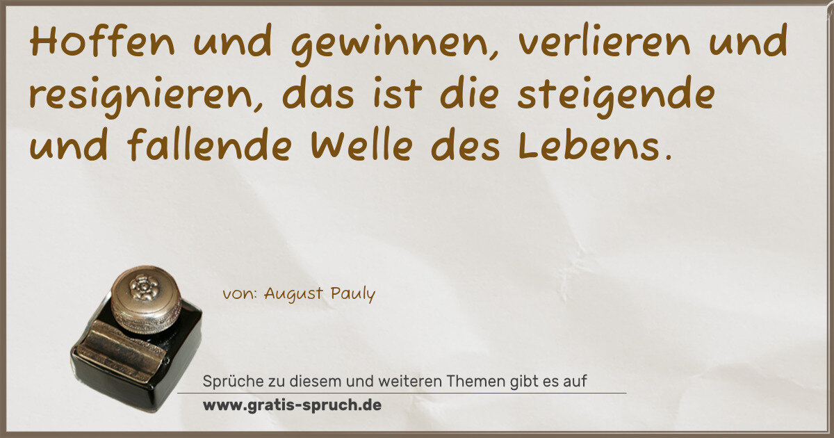 Hoffen und gewinnen, verlieren und resignieren, das ist die steigende und fallende Welle des Lebens.