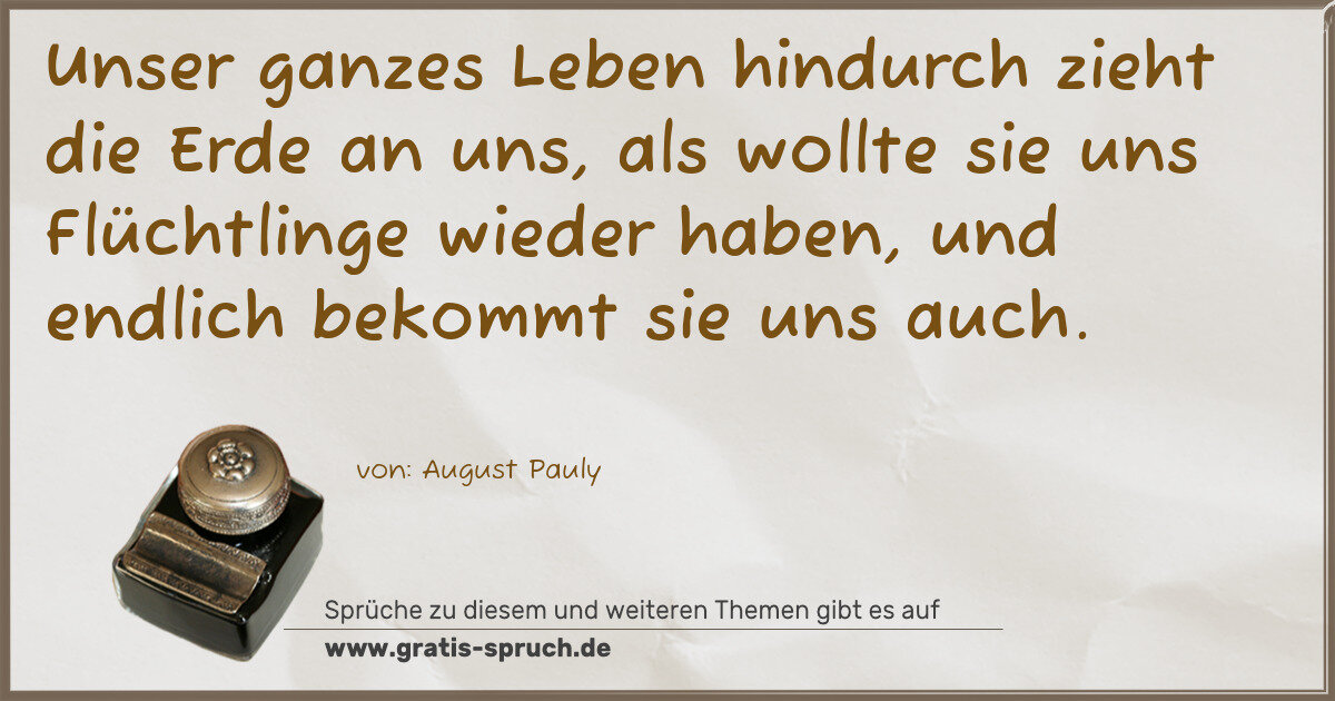 Unser ganzes Leben hindurch zieht die Erde an uns, als wollte sie uns Flüchtlinge wieder haben, und endlich bekommt sie uns auch.