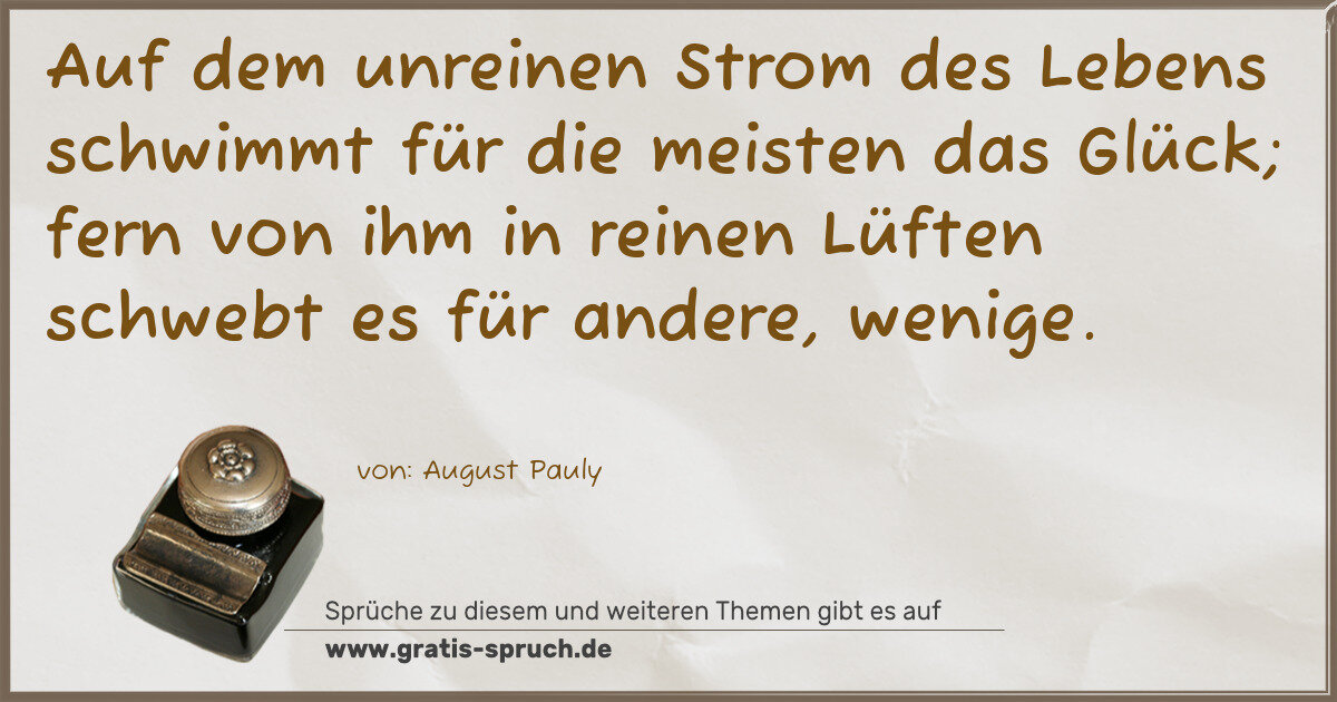 Auf dem unreinen Strom des Lebens schwimmt für die meisten das Glück; fern von ihm in reinen Lüften schwebt es für andere, wenige.