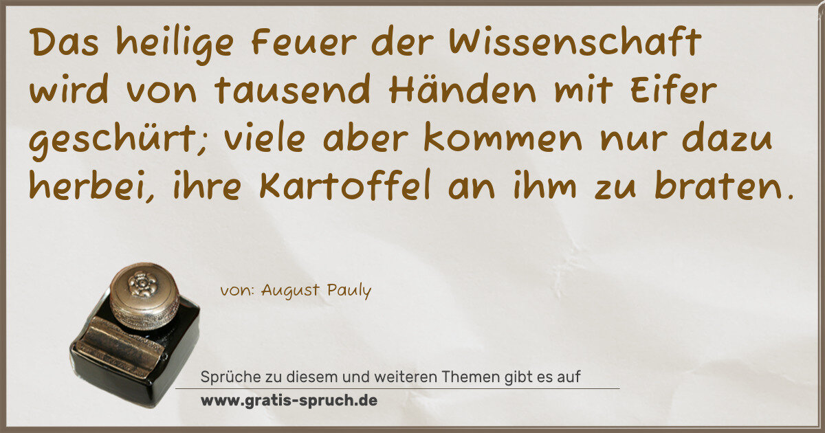Das heilige Feuer der Wissenschaft wird von tausend Händen mit Eifer geschürt; viele aber kommen nur dazu herbei, ihre Kartoffel an ihm zu braten.