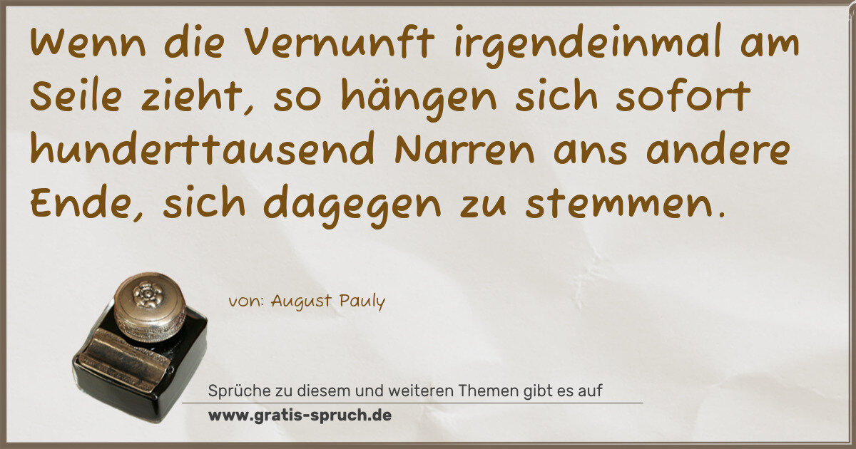 Wenn die Vernunft irgendeinmal am Seile zieht, so hängen sich sofort hunderttausend Narren ans andere Ende, sich dagegen zu stemmen.