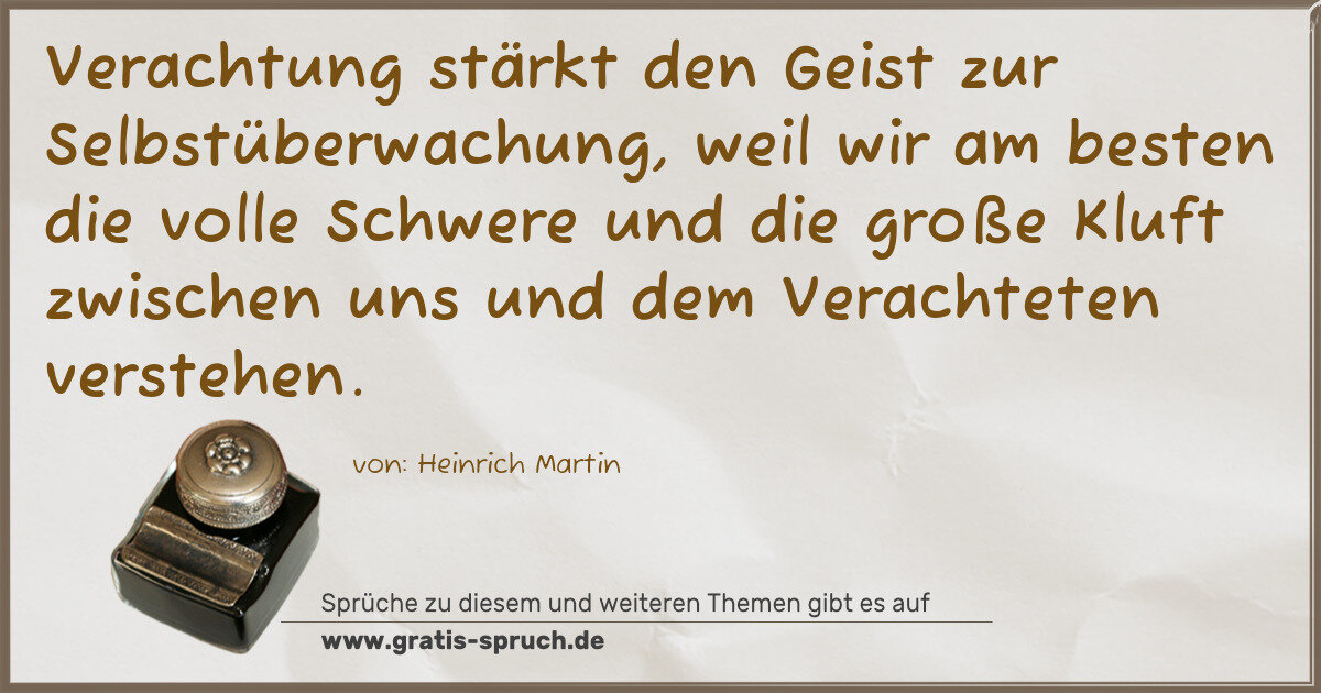 Verachtung stärkt den Geist zur Selbstüberwachung, weil wir am besten die volle Schwere und die große Kluft zwischen uns und dem Verachteten verstehen.