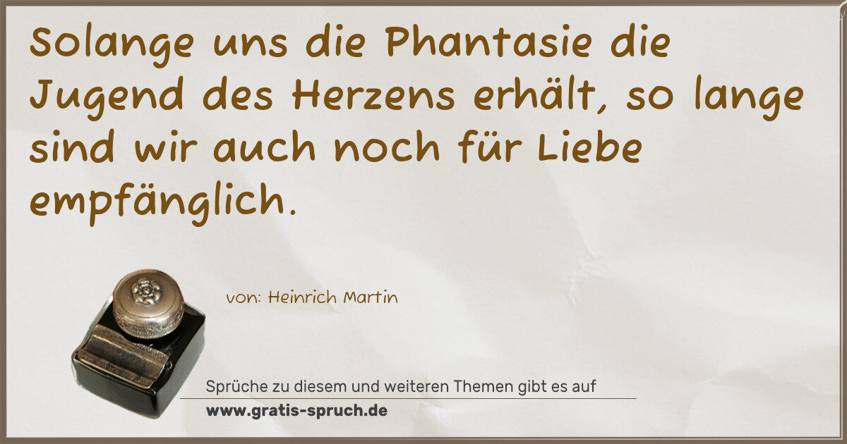 Solange uns die Phantasie die Jugend des Herzens erhält, so lange sind wir auch noch für Liebe empfänglich.