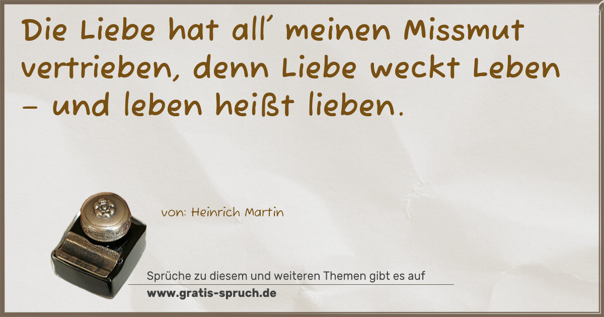 Die Liebe hat all' meinen Missmut vertrieben, denn Liebe weckt Leben – und leben heißt lieben.