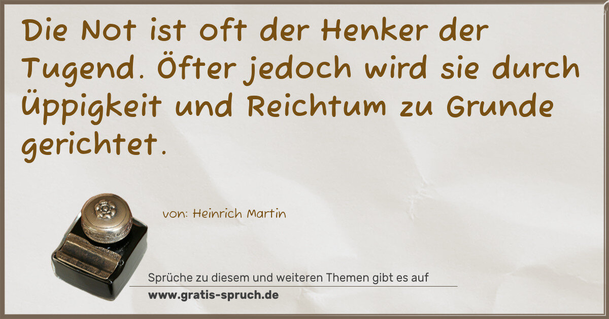 Die Not ist oft der Henker der Tugend. Öfter jedoch wird sie durch Üppigkeit und Reichtum zu Grunde gerichtet.