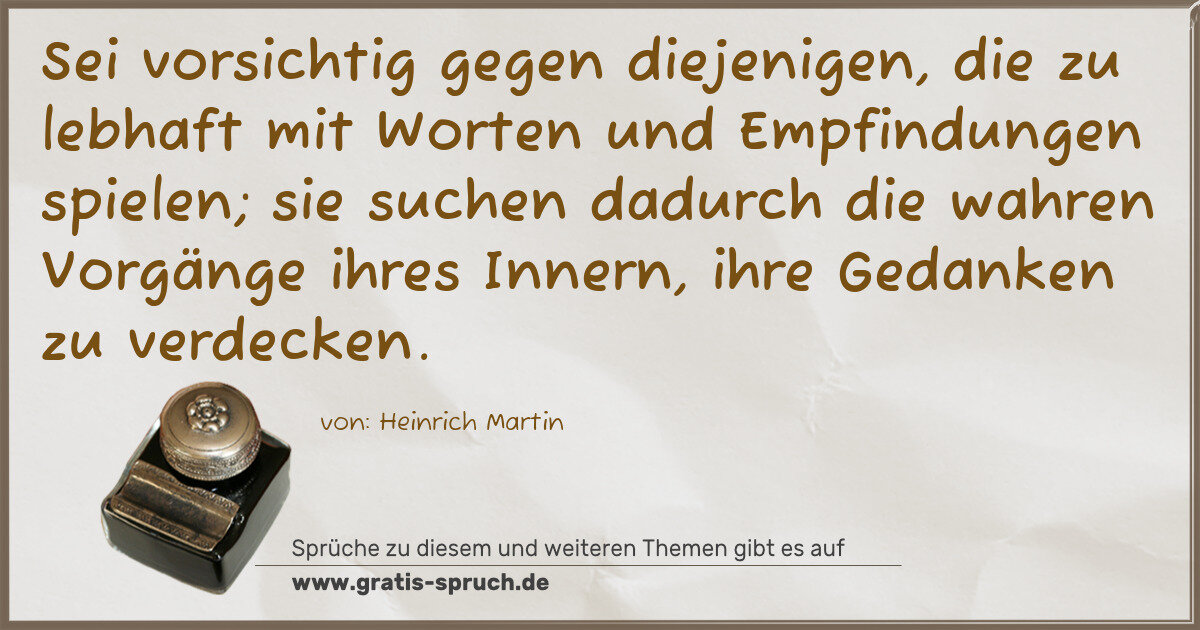 Sei vorsichtig gegen diejenigen, die zu lebhaft mit Worten und Empfindungen spielen; sie suchen dadurch die wahren Vorgänge ihres Innern, ihre Gedanken zu verdecken.