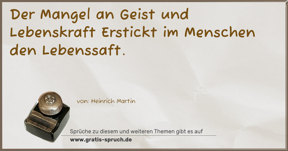 Der Mangel an Geist und Lebenskraft Erstickt im Menschen den Lebenssaft.