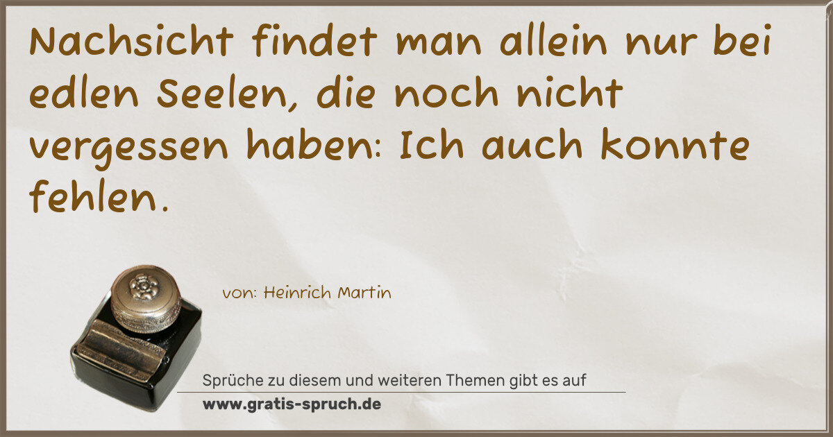 Nachsicht findet man allein nur bei edlen Seelen, die noch nicht vergessen haben: Ich auch konnte fehlen.