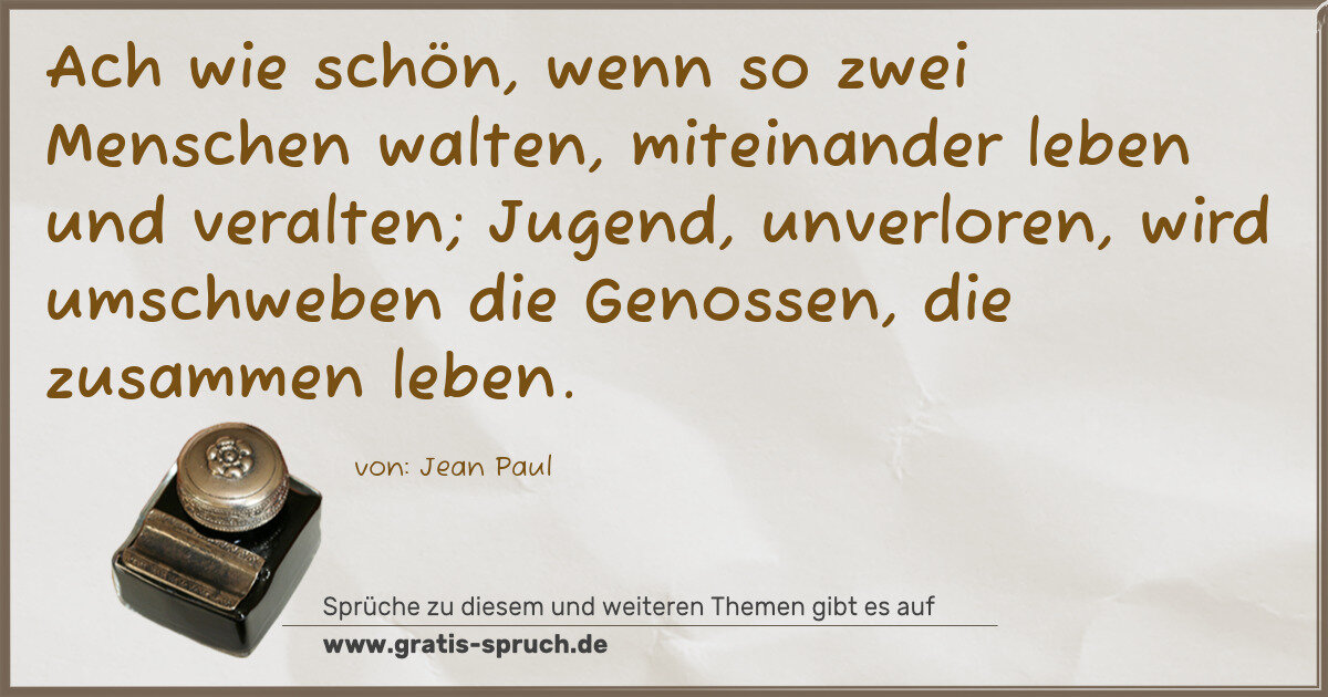 Ach wie schön, wenn so zwei Menschen walten, miteinander leben und veralten; Jugend, unverloren, wird umschweben die Genossen, die zusammen leben.