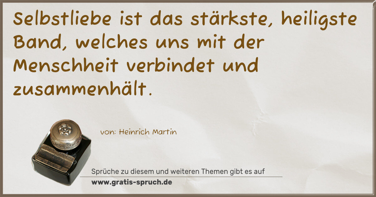 Selbstliebe ist das stärkste, heiligste Band, welches uns mit der Menschheit verbindet und zusammenhält.