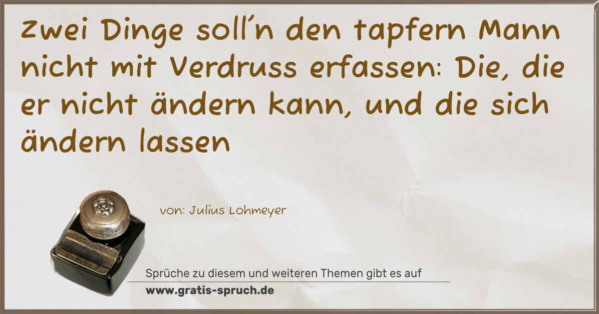 Zwei Dinge soll'n den tapfern Mann nicht mit Verdruss erfassen: Die, die er nicht ändern kann, und die sich ändern lassen